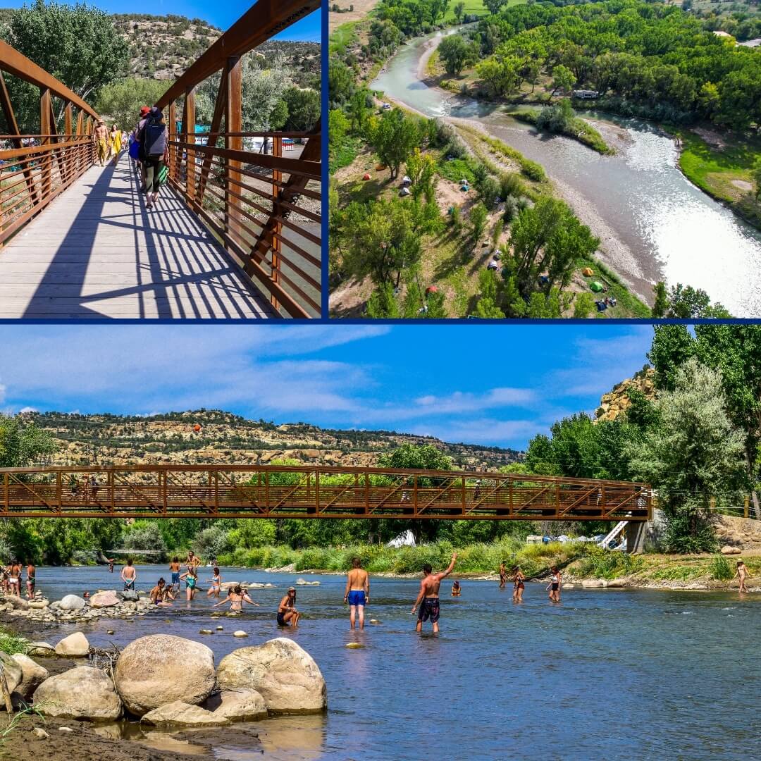 Nestled alongside the Animas River, this tranquil sanctuary offers a variety of lodging options — from tiny home cabinas and cozy bungalows, to glamping tents in the Magical Forest. Wake up to the sound of flowing water and wild birds, unwind in a hammock by the river, or gather around the firepit beneath a starlit sky. Reconnect with your inner child through playful adventure: tubing, paddleboarding, water slides, and more. Whether you stay in on-site accommodations, bring your RV, or tent camp, there’s space to unwind and remember your place in the flow of nature.
